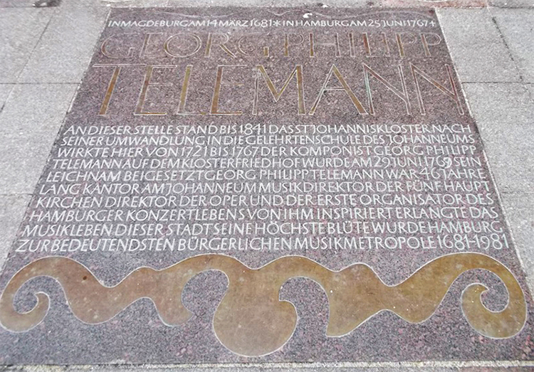 Treffpunkt Telemann-Denkmal vor dem Alten Rathaus, anschließend Führung durch „Telemanns Hamburg“ mit dem Vorsitzenden der Hamburger Telemann-Gesellschaft Max Busch (ca. 1 Stunde), Endpunkt: St. Michaelis.